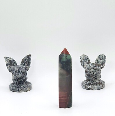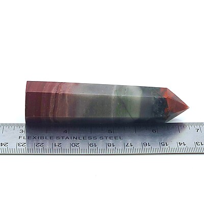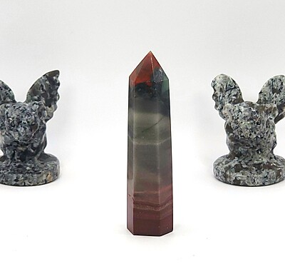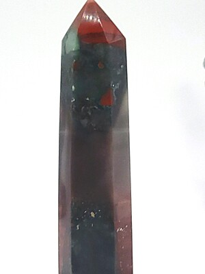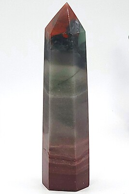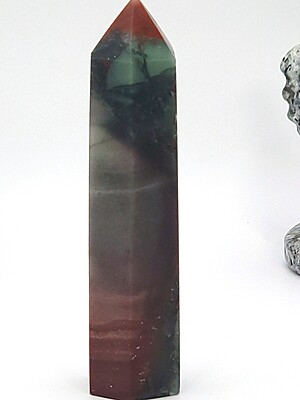 Elevate your space with our unique African bloodstone tower featuring striking gray, red, and black colors in a rare banded formation. Perfect for collectors or as a special gift. Only one available!