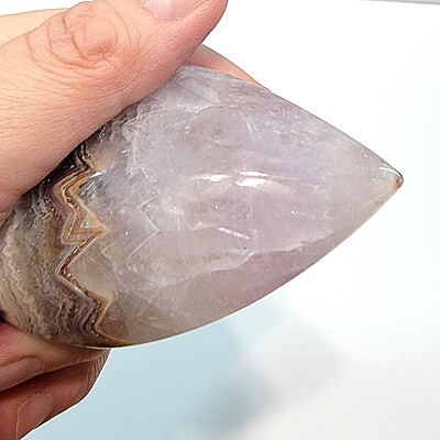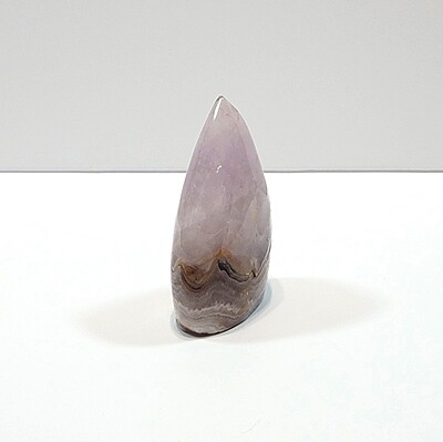 Our amethyst agate flame carving is perfect for décor and gemstone collections. Some consider these carvings to be tear drops. No matter what you prefer to call it, this beautiful piece would make a wonderful gift. The amethyst and agate combination is known for the beautiful gradient from agate to amethyst. This little beauty has a few rainbows, too. We only have one of these beautiful flames. Don't miss out!