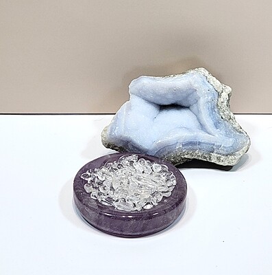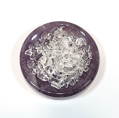 This amethyst bowl is perfect for creating a DIY décor piece with your favorite gemstone chips or tumbles. It is the perfect size—it does not require huge lots of gemstone chips to fill, but yet it is large enough to use to make fun and interesting gemstone décor displays. Happy decorating!
