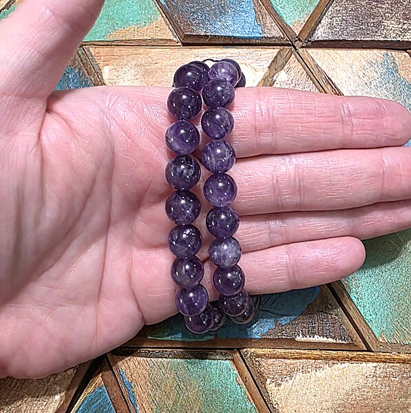 Designed for everyday wear, these bracelets are strung on a strong stretch cord that fits most wrist sizes comfortably. The rounded beads feel gentle against the skin and are lightweight enough for all-day comfort. Whether you choose to wear your amethyst bracelet alone for a classic statement or layer it with other favorites, its rich color and elegant design make it a standout addition to any jewelry collection.