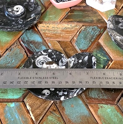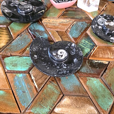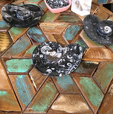 Check out our ammonite-shaped fossil plates made from genuine fossil-infused stone. They are ideal for holding small items or as a display piece. We only have three available.