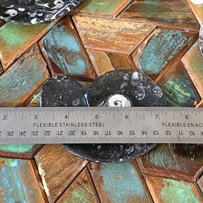 These ammonite-shaped fossil plates are WYSIWYGs.
