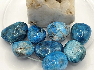 One of our favorite suggestions for using apatite tumbles in gemstone décor is to add them to a crystal or glass plate, bowl, vase, or other container. You can layer them or use them to surround figurines or other display pieces, too. With all of the colors and variation available in gemstone tumbles, there is almost always a complementary or accent color that will suit your personal style.