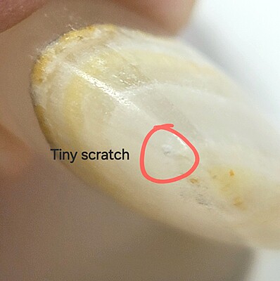 - Smaller yellow- Approx. 1.25" at widest point, 18.00g, chipped tip