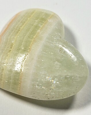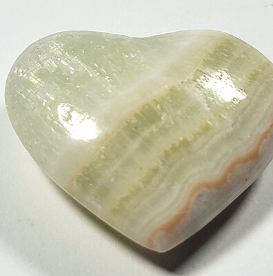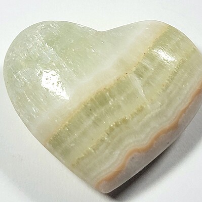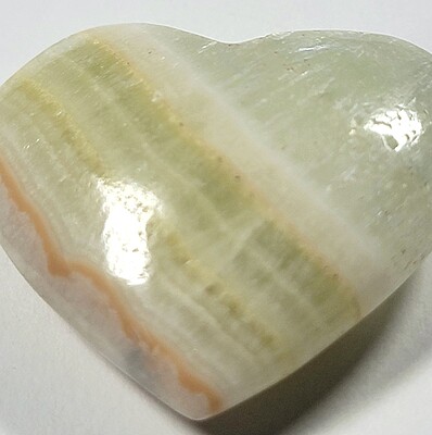 Often referred to as onyx, these aragonite hearts come a few lovely colors for you to choose from. We have 5 available. As does happen from time to time, a couple of these hearts arrived with chipped tips. We have reduced the prices on those pieces. These beautiful hearts are perfect for a gift or as part of a collection. Take your pick!