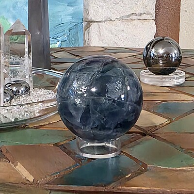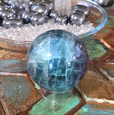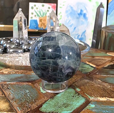 If you enjoy this blue rainbow fluorite sphere, you will love our entire fluorite selection found here.