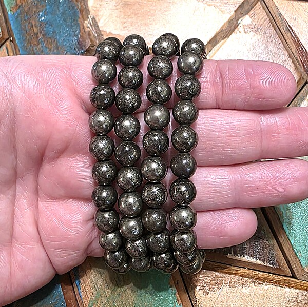 Add a bold accent to your style with our chalcopyrite bracelets, featuring genuine gemstone beads with a brilliant metallic finish. Sometimes confused with “peacock ore” (bornite), chalcopyrite offers its own unique golden shine.