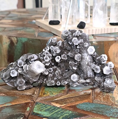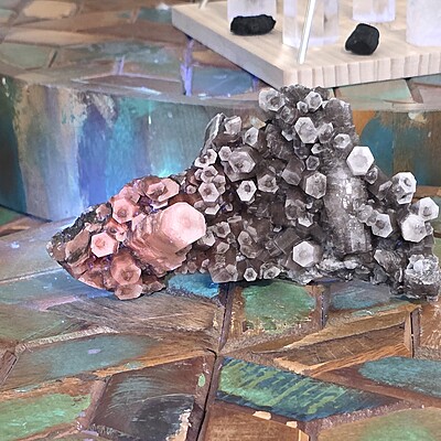 When calcite crystals form into clusters, they can create stunning and intricate formations known as "calcite clusters." These clusters are typically composed of multiple individual calcite crystals that have grown together in close proximity. Calcite clusters can vary in size, shape, and color, depending on the specific conditions under which they formed. The crystals in a calcite cluster may exhibit a wide range of shapes, including rhombohedral, scalenohedral, and prismatic forms. The cluster formation of calcite can result in beautiful and unique specimens that are highly sought after by collectors and enthusiasts for their aesthetic appeal and natural beauty.