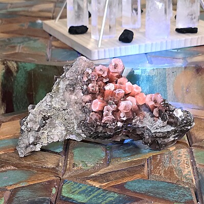 Showcase something truly extraordinary with this singular columnar calcite cluster, featuring a dramatic red fluorescence under UV light. This rare specimen boasts striking column-like formations and a natural crystalline luster, making it an unforgettable centerpiece for any collection or display. Whether you’re a seasoned collector or simply appreciate the wonders of nature, this calcite cluster offers both visual intrigue and a touch of scientific marvel.