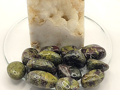 Dragon blood jasper tumbles are a wonderful addition to gemstone collections. These tumbles have a striking mix of olivine green and deep red and black. These unique tumbles add a gorgeous pop of color where ever they are placed. We sell these beauties by the piece. Get yours today!