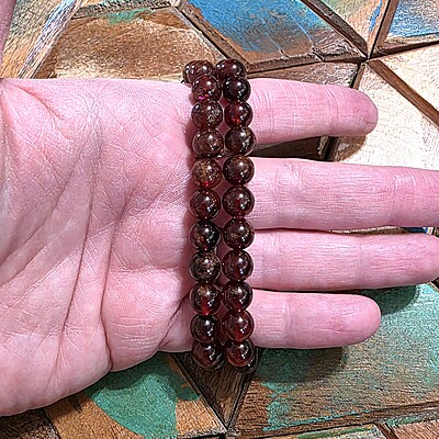 Our garnet bracelets are strung on strong, stretch-resistant elastic cord for a secure and comfortable fit that accommodates most wrist sizes. The smooth, rounded beads feel pleasant against the skin, making these bracelets ideal for all-day wear. Their elegant design pairs effortlessly with both casual and dressy outfits, and they look beautiful stacked with other gemstone bracelets for a personalized, layered look. These bracelets make thoughtful gifts for anyone who appreciates natural stones, color therapy, or unique, handcrafted jewelry.