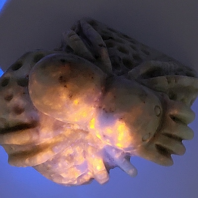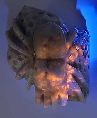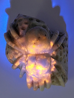 This hackmanite spider carving is incredible. It is UV reactive and huge. Take a look at this fun and unique carving!