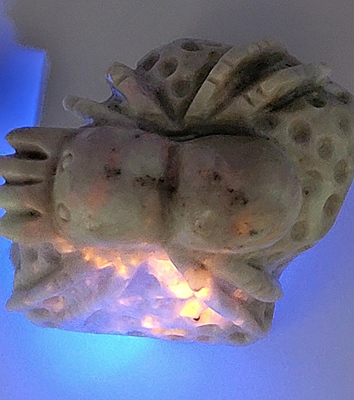 - UV Notes: For gemstones, 365nm is the best for UV lighting. Only some specimens illuminate under the other part of this spectrum (370-400nm). This is why some pictures are not as clear for our UV reactive pieces. Our current lights are at 365nm, but used to be 395mm only. For home use, the 395nm is less expensive, but in some cases, will need a zoomed beam on the flashlight style UV lights. If you do use a 365nm light, please take care to use eye protection.