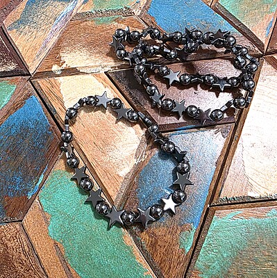 Take a look at our polished hematite star bracelet featuring metallic, star-shaped beads. They are modern, playful, and perfect for everyday wear or stacking.
