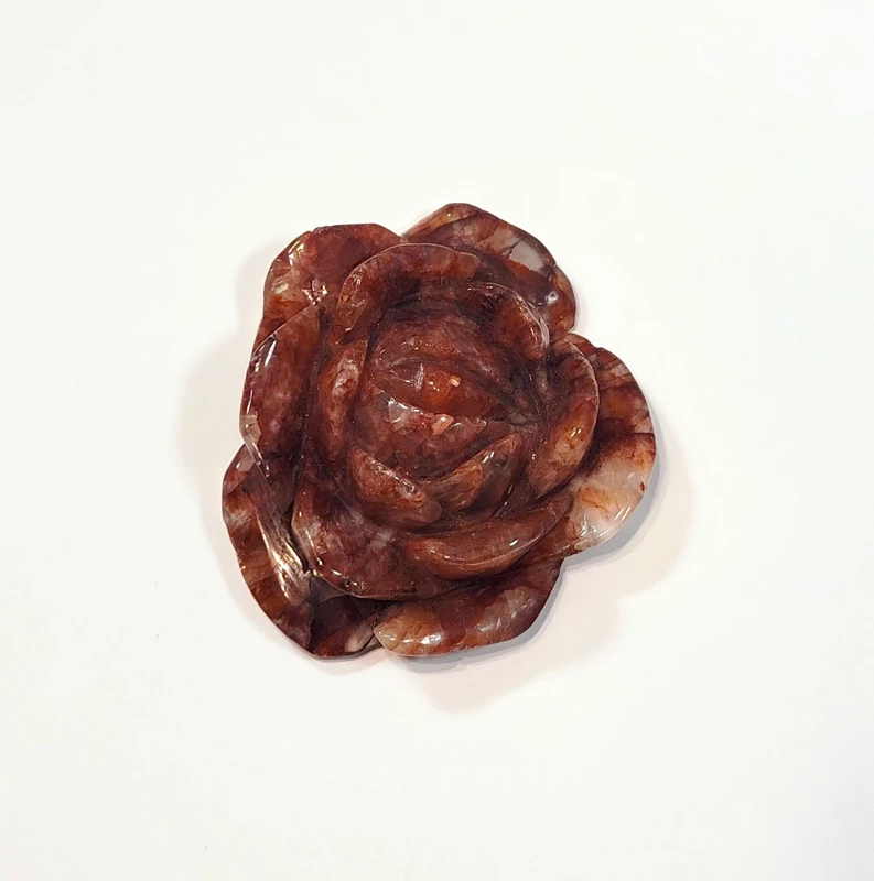 Our hematoid quartz rose carvings, also known as fire quartz, are fantastic pieces of lapidary artistry! You don't want to miss out on these stunning pieces.