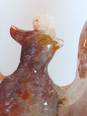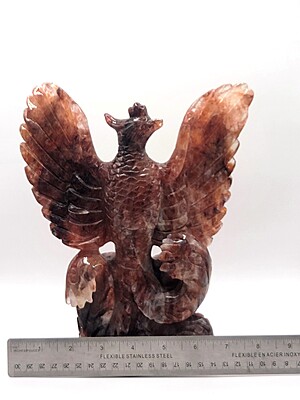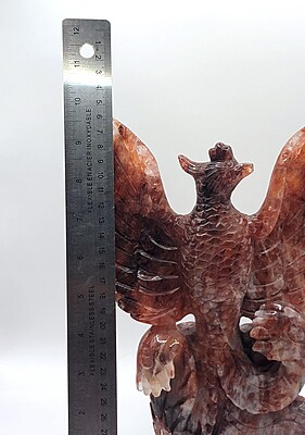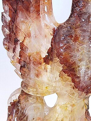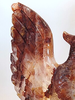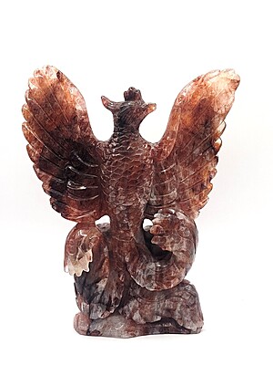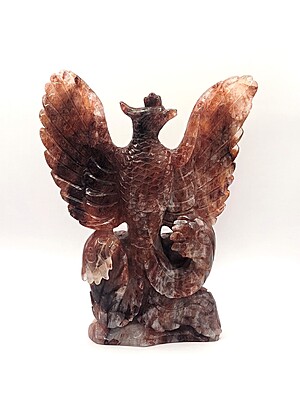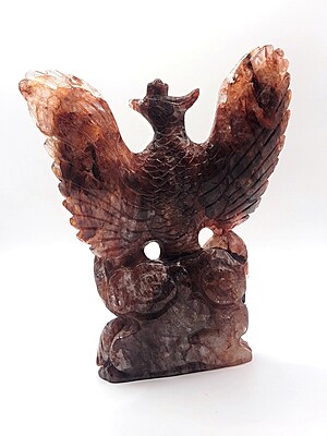 These hematoid quartz phoenix carvings are extraordinary pieces of art! Also known as fire quartz, these pieces are huge! Our fiery red piece weighs approximately 1.904kg (over 4.00lbs!) and measures about 9.00" tall X 8.00" wide (at the widest point).