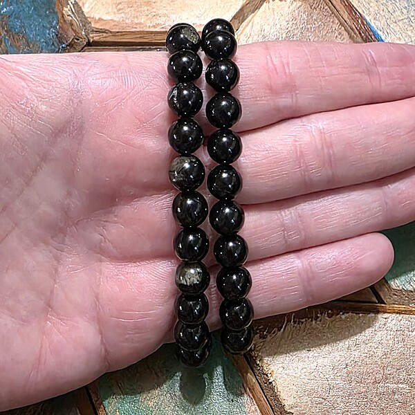 Our hypersthene bracelets are strung on a durable stretch cord for a secure and comfortable fit that suits most wrist sizes. The rounded beads are lightweight and gentle on the skin, making them ideal for everyday wear. Their versatile, neutral tones make these bracelets easy to pair with any outfit, whether casual or dressy.