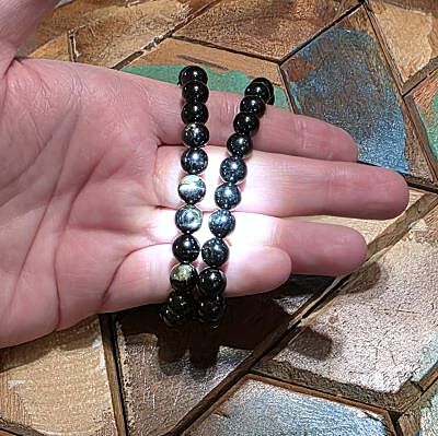 Add subtle elegance with our hypersthene bracelets, featuring genuine beads with a dark, silky sheen. These lovely beads have gorgeous schiller. Don't miss out on these!