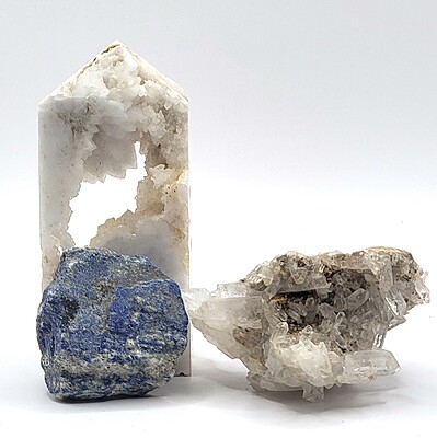 Lapis lazuli has caught the eye of collectors since Ancient Egypt. Did you know some lapis pieces fluoresce under a UV light? We have 4 larger pieces of lapis lazuli available. They are great for décor and collectors. These pieces could also be put into a tumbler (review your manufacturer's size suggestions). Choose your favorite today!