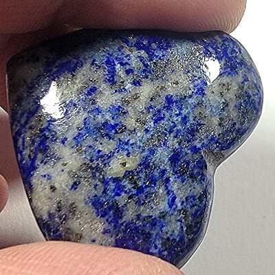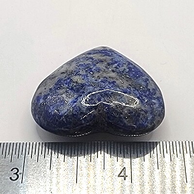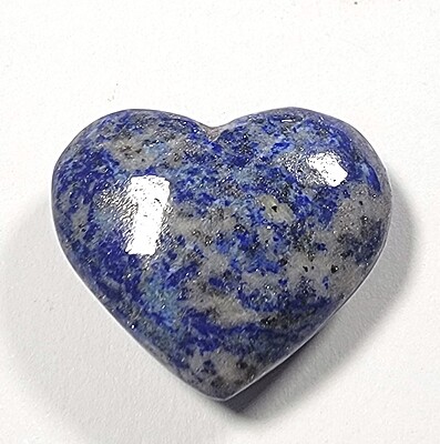 This lapis lazuli heart is such a pretty piece. Lapis lazuli has caught the eye of collectors since Ancient Egypt. Did you know some lapis pieces fluoresce under a UV light? This piece is approximately 1.25" at the widest part and weighs about 17.00g. There are visible pyrite inclusions in this piece. Don't miss out on this lovely heart carving!