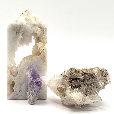 This light amethyst specimen is perfect for a collector or added to a crystal grid display. In recent years, these lighter pieces of amethyst have become more popular perhaps because of their translucence. Do you have a preference?