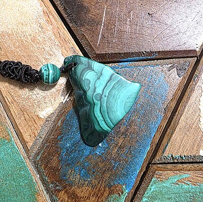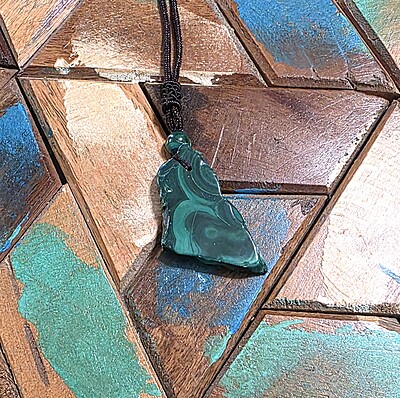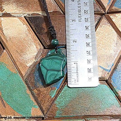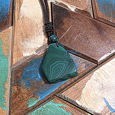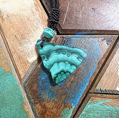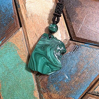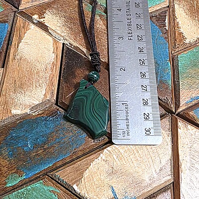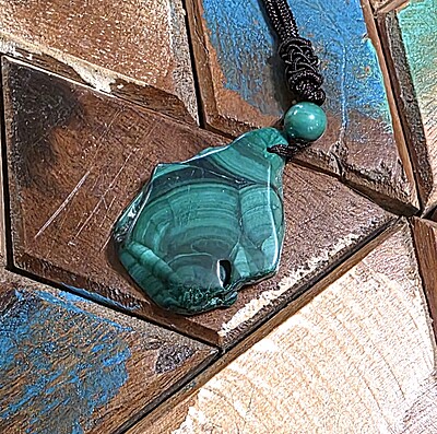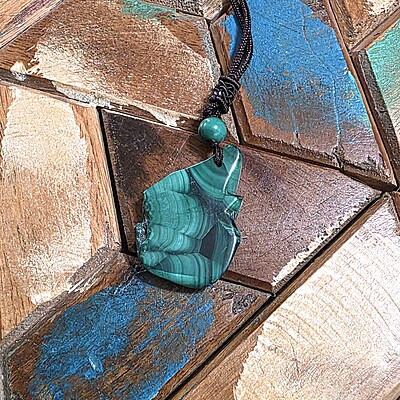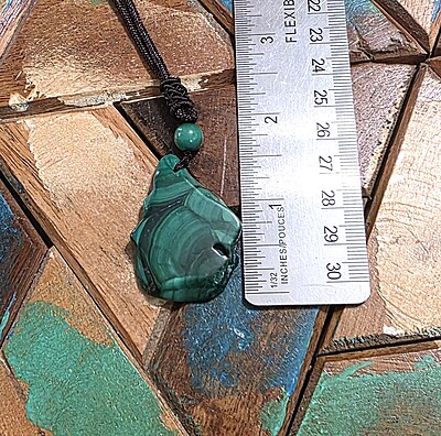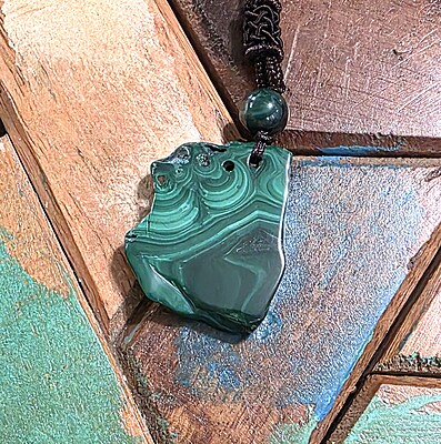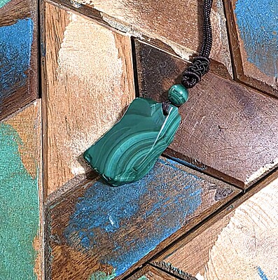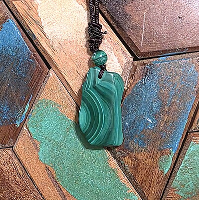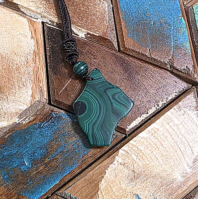 Take a look at the fantastic, genuine malachite slab necklaces with bold green banding. Each pendant is unique and polished for comfort and style, perfect for everyday wear or special occasions.