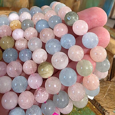 Morganite is a gemstone variety of the mineral beryl, the same mineral family as emerald and aquamarine. It is most famous for its lovely pink tones, but can also appear in shades of peach, salmon, and even pale violet. These natural color variations are due to trace elements present during the crystal’s formation, giving each bead a one-of-a-kind look.