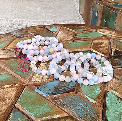 Add a touch of elegance with our morganite bracelets, featuring natural pastel beads in shades of pink, peach, and more.