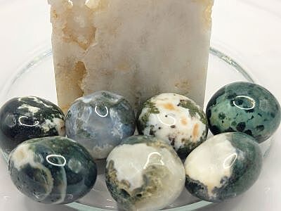With their swirls of green and white, moss agate tumbles are a favorite started crystal for a new collection. Many people use them in their spiritual practices. What will you use your tumbles for?