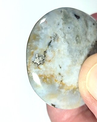 "Orbicular Jasper is a name given to a highly silicified rhyolite or tuff that has quartz and feldspar crystallized into radial aggregates of needle-like crystals forming orbicular (spherical) structures."