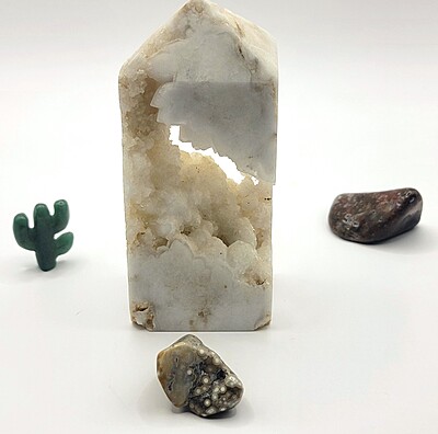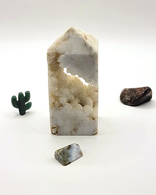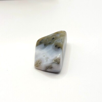 Ocean jasper comes in a variety of colors and patterns which makes it easy to fall in love with. These two ocean jasper tumbles have distinct colors and patterns with one piece featuring agate drusy. Add a piece to your growing collection today!