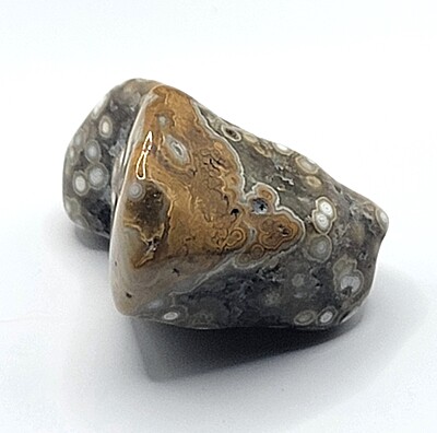 These two ocean jasper tumbles both boast spectacular botryoidal patterns. One piece in this collection also features agate drusy crystals. Ocean jasper is revered for its combination of colors and patterns. Some pieces of ocean jasper also have some UV reactivity. These tumbles are great for crystal healing work or your gemstone collection. Choose your favorite piece today!