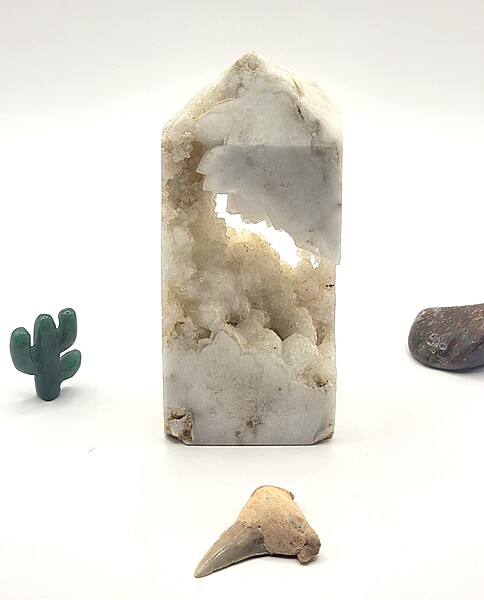 A favorite of collectors, we have one Otodus shark tooth fossil available. These shark teeth are commonly found using poor extraction techniques which often leads to a less than viable specimen. This lovely piece, however, is a beautiful specimen. Take a look!