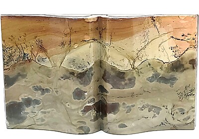 This picture jasper book carving is perfect for a book lover. Great for décor and gifting, this incredible features a mountainous desert-like scene no matter which way you display it. Creamy beiges, lovely grays, as well as brown and yellow, create a beautiful scene on the stone palette. These are the perfect colors to blend into almost any décor style, including Southwestern styles.