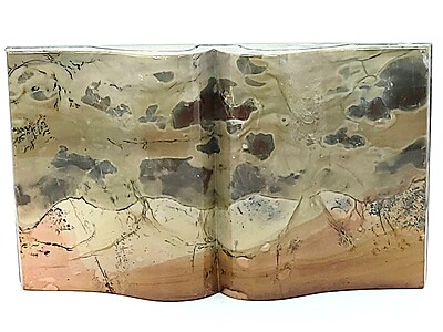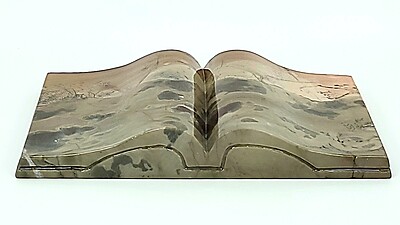 Bibliophiles (book loving people) will rejoice with this spectacular picture jasper book carving. This piece would make an amazing gift or décor piece to add to any living space. We have a limited quality. Get this before it's gone!