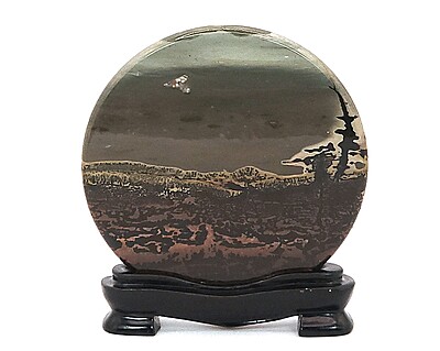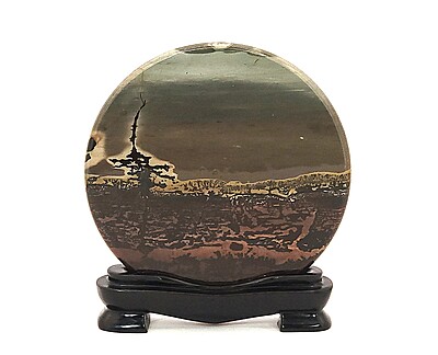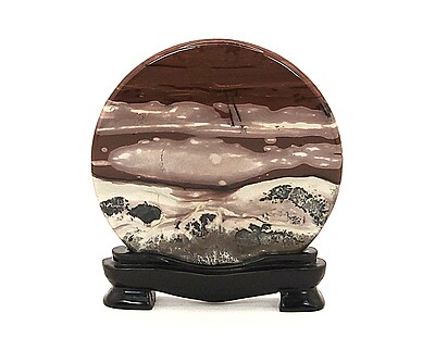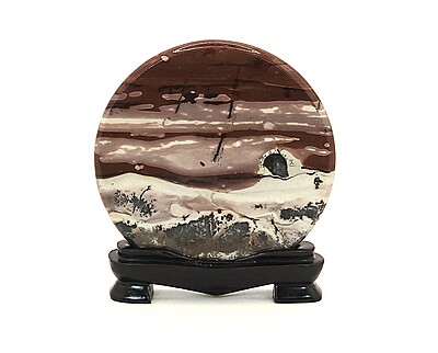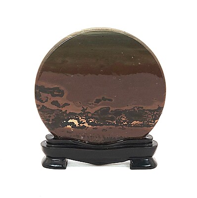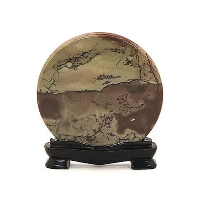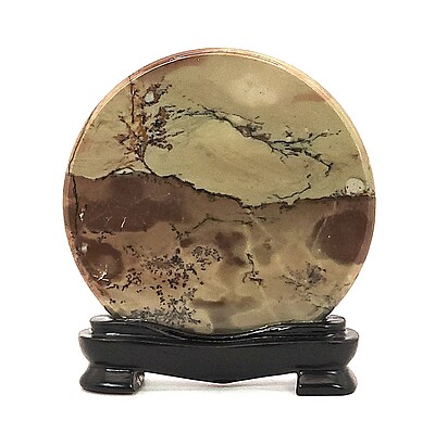 These picture jasper round slabs with stand are unique statement pieces. Great for décor and gifting, these incredible pieces come in a wide variety of colors and patterns. Creamy beiges, lovely grays, as well as green, brown, yellow, and red create a beautiful scene on the stone palette. These are the perfect colors to blend into almost any décor style, including Southwestern styles. The patterns often look like scenery or unique art pieces. These slabs are permanently set into their stands. We have 4 amazing slabs available. Which one best suits your living space?
