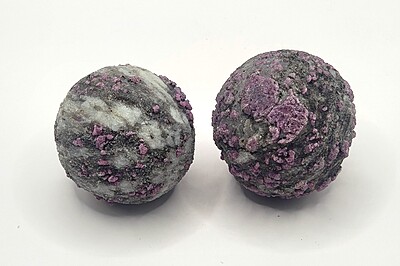 These raw plum blossom tourmaline spheres are WYSIWYGs.