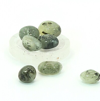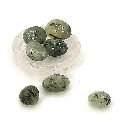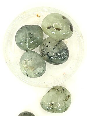 One of our favorite suggestions for using prehnite with epidote tumbles in gemstone décor is to add them to a crystal or glass plate, bowl, vase, or other container. You can layer them or use them to surround figurines or other display pieces, too. With all of the colors and variation available in gemstone tumbles and chips, there is almost always a complementary or accent color that will suit your personal style.