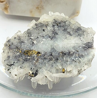 This quartz with chalcopyrite cluster is a WYSIWYG.