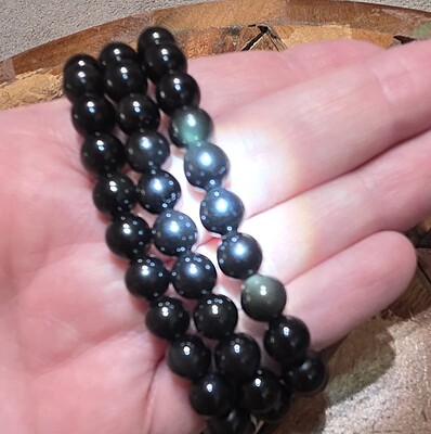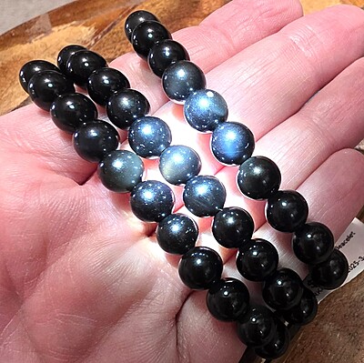Enjoy subtle flashes of color with our rainbow obsidian bracelets. Each polished bead reveals iridescent hues in the light—perfect for everyday style and easy to wear.
