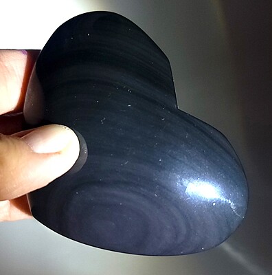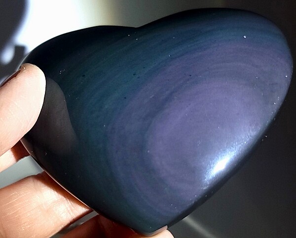 Take a look at this magnificent rainbow obsidian heart! It has fantastic banding of green and purple. Don't miss this high quality piece!