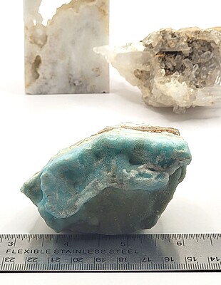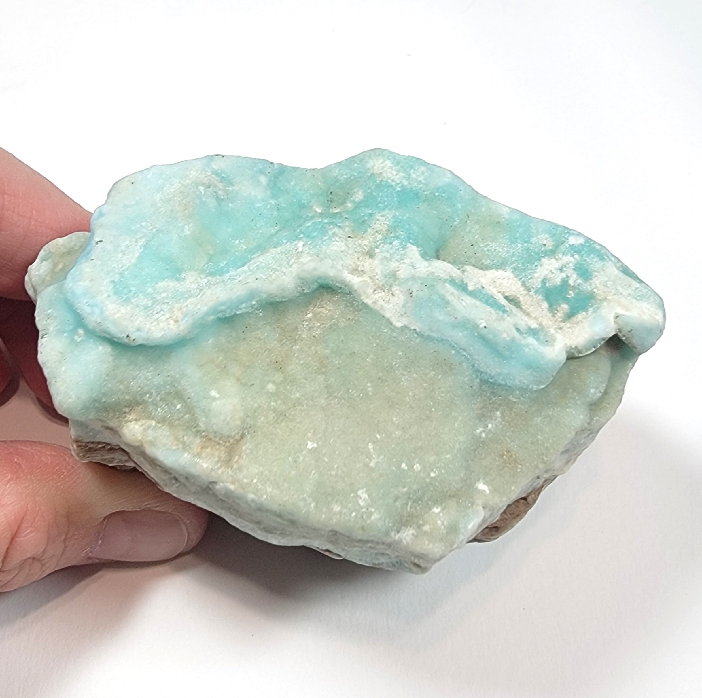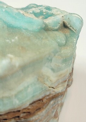 This raw blue aragonite chunk is a lovely way to add a natural feel to your living space. The lovely pattern and calming colors bring a sense of calm and ease to any living space. This piece is approximately 246.00g and 3.25" wide.