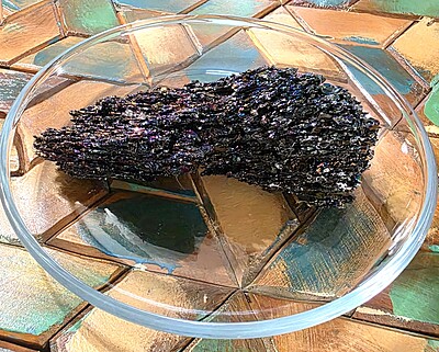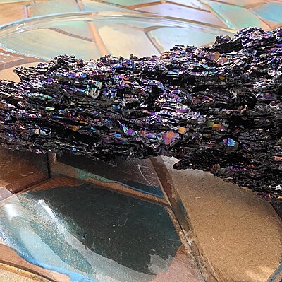 We have 2 beautiful pieces of the iridescent raw carborundum. It is known for it's unique sheen that resembles oil against the dark black of the stone. It is one of the first synthetic stones. Have you heard the story of how raw carborundum came about? If not, find out more below!
