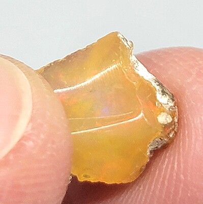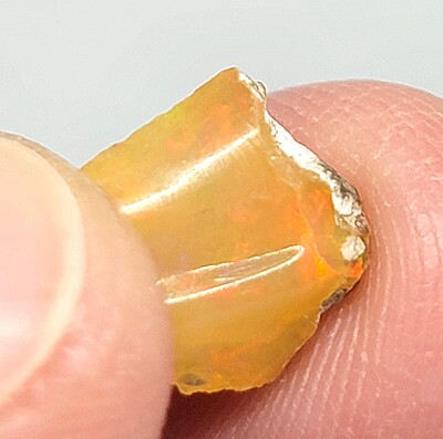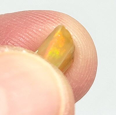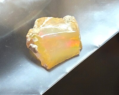 This small, but mighty Ethiopian opal specimen is a great addition to a raw collection. Its opalescence comes in colors of red, orange, yellow, and green. The pictures could not quite capture the stunning beauty of this little piece.