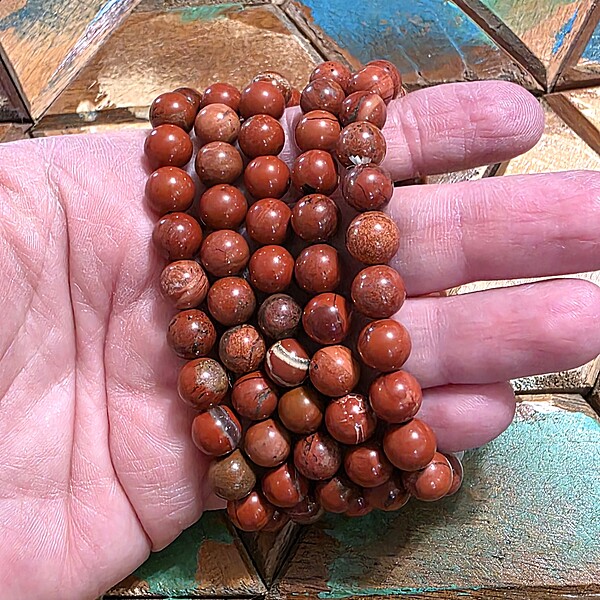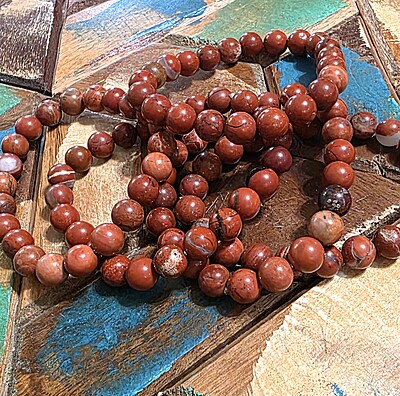 Add a bold pop of color to your jewelry collection with our red jasper bracelets. Each red jasper bracelet is crafted from genuine, polished beads that showcase the stone’s warm, earthy red tones—ranging from deep brick to vibrant terracotta, often accented by natural streaks or patterns. The smooth, rounded beads are carefully selected for their rich color and unique markings, ensuring that every bracelet is one-of-a-kind.