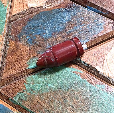 Add a bold statement to your jewelry collection with our red jasper bullet pendant. Expertly shaped and polished from genuine red jasper, this pendant features a carved bullet—an iconic form often associated with strength and protection. The deep, earthy red tones of jasper are complemented by the pendant’s sleek design, making it a standout accessory for daily wear or special occasions. Our red jasper bullet pendant is ready to wear with your favorite chain or cord. Its minimalist design suits a variety of styles and can be worn alone or layered with other pieces. The natural red jasper adds a grounding, earthy touch to the bold bullet silhouette. Red jasper bullet pendants make a meaningful gift for anyone seeking a symbol of protection, resilience, or personal empowerment—whether for yourself or a loved one.