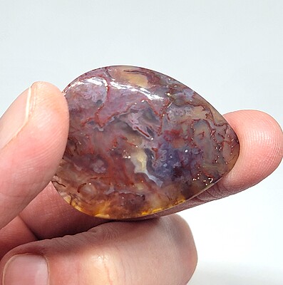 Yes! You've found it—a real, not treated, red moss agate cabochon! This is an amazing piece that got lost in our system until recently. Now, it's ready to come home to you!