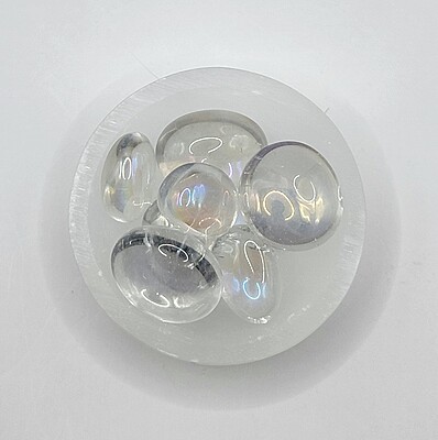 Contrary to popular belief, our satin spar bowls are NOT true selenite. Does that mean we are selling fakes? No way! Satin spar and selenite are in the same family—gypsum. However, these are really considered satin spar. Now that you've had a miniature geology lesson, why don't you add one to your cart?