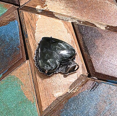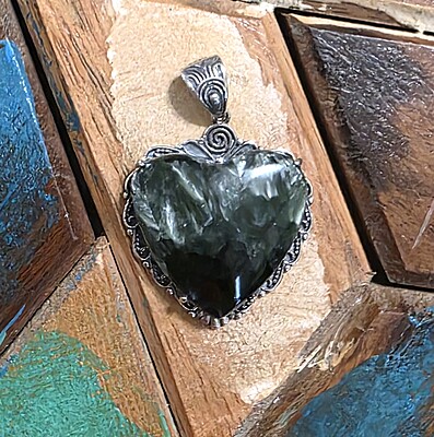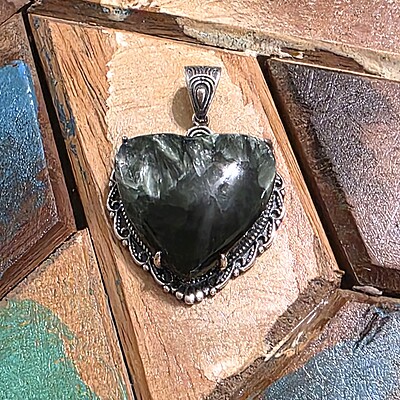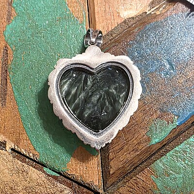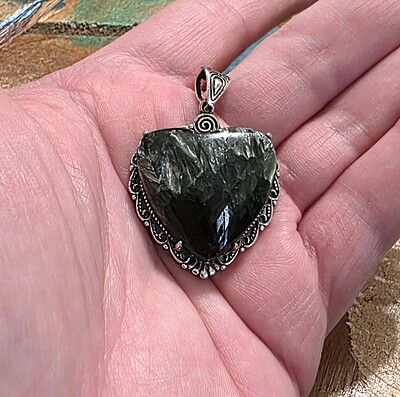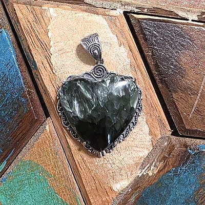 Showcase natural artistry with our seraphinite heart pendant, featuring deep green hues and silvery feather-like patterns. This pendant is unique, polished, and ready to wear for everyday elegance.