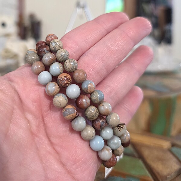 Take a look at these stunning Shoushan stone bracelets! They are known for their lovely pale blue intermixed with warm brown, neutral, and red toned stone. We love this unique color combination for warmth and calm with some added grounding. Elementally, this is where sky and sea meet earth. Get your Shoushan stone bracelet today!
